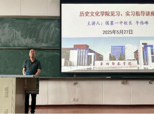5月27日上午,历史文化学院在文汇楼D234举办2022级见习、实习指导讲座,此次讲座特别邀请我院优秀毕业生二七区侯寨一中牛伟锋校长为同学们作报告,22级全体同学积极参与。