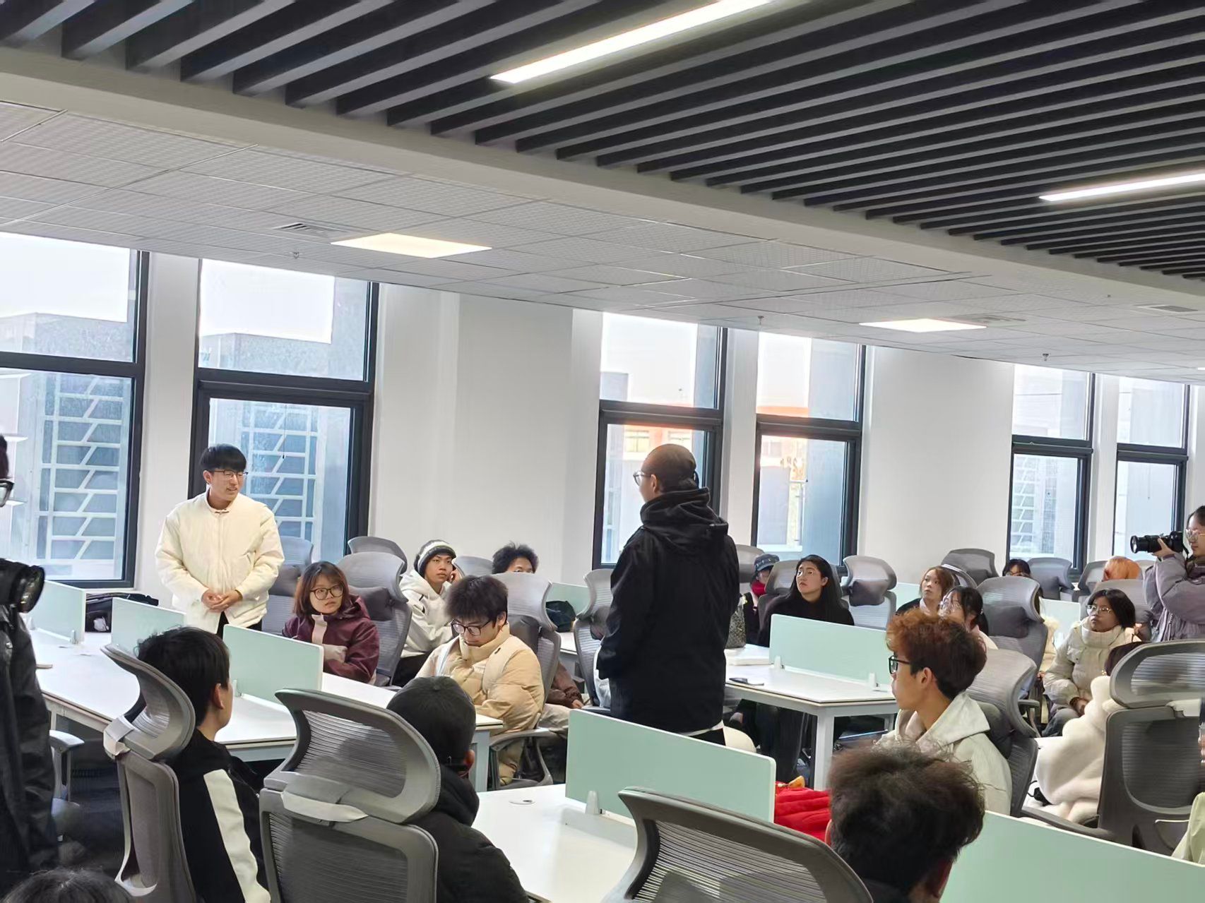 活动中,日新阅益短剧公司负责人介绍了短剧行业趋势及AI画作创作运营模式,两校师生现场观摩制作流程,并与导演、制片人就“内容与商业平衡”“IP衍生开发”等议题深入交流。两校学生结合专业知识,分享对用户画像、版权管理等方向的见解,现场互动热烈。