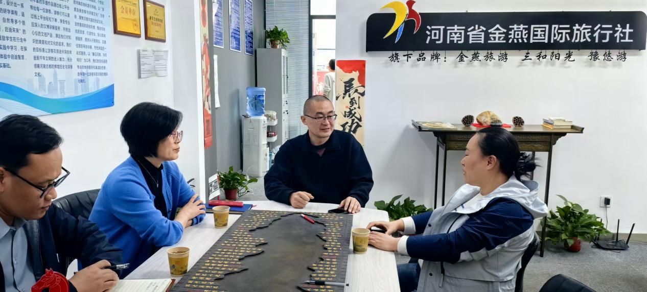 为进一步深化产教融合,拓宽毕业生就业渠道,推动文旅产业高素质人才培养,2026年4月9日,历史文化学院党总支书记刘洪,院长牛巧红带队赴河南省金燕国际旅行社有限公司走访调研。学院党总支副书记郭少华、辅导员李欣老师共同参加活动。