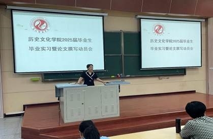 为保证历史文化学院毕业生实习任务顺利进行与毕业论文高质量完成,7月4日上午,历史文化学院在文汇楼A101召开了2025届毕业生实习暨论文撰写动员大会。出席此次会议的有历史文化学院党总支副书记刘洪、副院长黄俊伟以及相关指导教师和2025届毕业生。大会由黄俊伟副院长主持。
