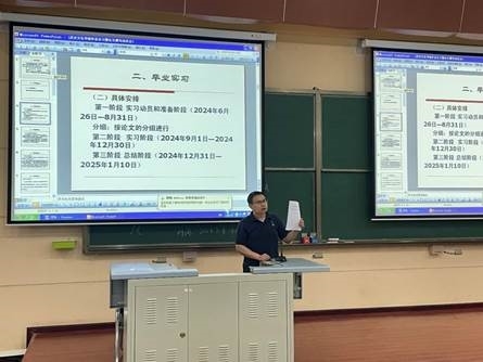 本次会议的召开使同学们进一步明确了毕业实习和毕业论文的重要意义,充分了解到毕业实习和毕业论文的安排和要求,也为顺利开展后续实习和毕业论文撰写工作打下了坚实的基础。