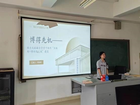 本次大赛各年级学生积极参与,共有16支队伍参赛。在初选现场,各参赛队领衔人通过PPT陈述,生动展示了各自的项目内容、创新点及实践意义。每一份作品都体现了同学们对于创新创业的热情与执着。经过激烈的角逐,评委老师们对参赛队伍的创新思维、项目可行性及市场前景等方面进行了全面评估。最终,《“博”的先机——助力文旅融合背景下郑州“互联网+博物馆之城”建设》《极“智”点碧——基于国内首款物联网点茶机的非遗点茶东方美学创新者》《中国芭比——向世界讲好中国故事》三个项目成功脱颖而出,成功晋级校级创新创业大赛。