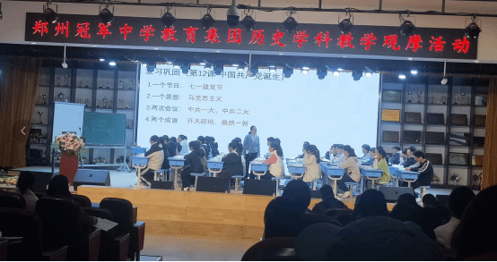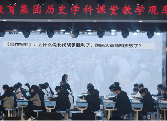 郑州冠军中学司芳芳老师和邵云老师采取同课异构的形式,进行了八年级历史上册第13课《国共合作与北伐战争》的现场授课。司芳芳老师的教学风格体现了创新性和灵活性,用物理上向心力和离心力作为线索贯穿课堂教学,注重情景再现,注重课堂引导,让学生在体验历史的过程中加深理解。邵云老师则注重互动教学,通过设计学习任务单、课堂提问和讨论等形式,调动学生的积极性,培养了学生的独立思考能力和历史分析能力。
