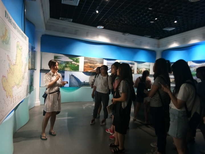 黄河博物馆建立于1955年,馆内不仅有丰富的文物资料,还有极具现代化特色的模型,历史文化气息十分浓厚。黄河博物馆分为流域地理、民主摇篮、千秋治河、治河新管和人文和谐等几大模块。首先,讲解员为大家详细地讲述了黄河的起源,流经区域,形成过程及发展方向,让同学们对黄河几千年来的发展有了一个大致的了解。然后,讲解员通过展示丰富的文物和影像资料,为大家介绍了黄河流域灿烂文化的起源等内容,为历史上的黄河归故、防洪防凌等提供了有力佐证。黄河流域不仅孕育着我们辛勤的先民们,而且诞生了灿烂的文明,其中,繁荣的农业、发达的手工业,还有礼乐制度、诸子百家和四大发明等都在黄河流域孕育而成。除此之外,黄河流域更是历代王朝中心,其中“八大古都”便有五个都在黄河流域内。