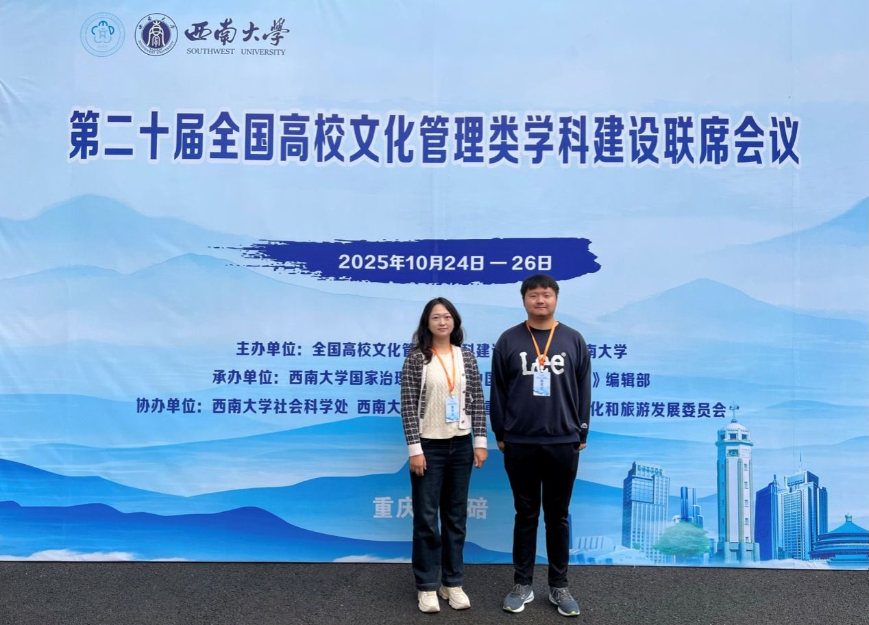 10月24日至26日,第二十届全国高校文化管理类学科建设联席会议在西南大学举办。历史文化学院文化产业管理系陈立长主任、王砾雪老师参加了此次会议。全国高校文化管理类学科建设联席会议是我国以文化产业管理专业为核心的规模最大、参加院校最多、历史最悠久、影响力最为深远的全国性学术年会,为国内文化管理学科产、学、研交流合作搭建的最重要的学术阵地和交流平台。