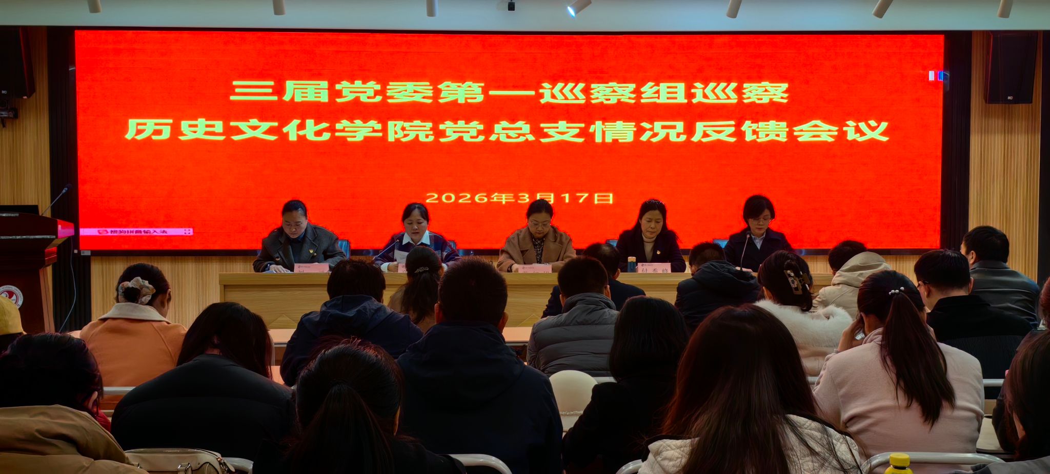 根据学校党委巡察工作领导小组的统一部署,2026年3月17日,三届党委第二轮巡察第一巡察组向历史文化学院党总支反馈巡察情况。反馈会议在历史文化学院举行,副校长范红娟出席会议并讲话,党委第一巡察组组长付秀峰宣读了反馈意见,历史文化学院党总支书记刘洪就做好巡察整改工作进行了表态发言。