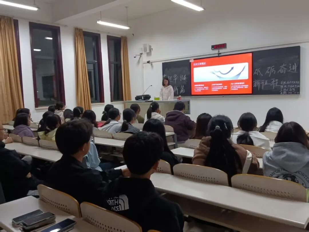 我院于10月9日在文汇楼开展了以“喜迎华诞谱新篇,砥砺奋进新征程”为主题的政治学习。本次政治学习由B25历史学一班原梦、B25历史学二班王晓东、B25文物与博物馆鲁文雯担任主讲人,25级全体同学积极参与。
