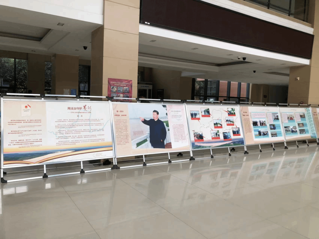 本次展览以 22 块展板为核心载体,系统呈现了《中华人民共和国黄河保护法》从立法部署到落地实施的全过程。展览内容涵盖前言、“高瞻远瞩 战略部署”“全程指导 全面审议”“扛牢责任 强化落实”“迎难而上 集中攻坚”“特色鲜明 重点突出” 及结语七大板块,清晰展现了各级部门对黄河流域生态保护和高质量发展的高度重视及推动法律落地的扎实行动,为师生深入理解黄河保护法治建设提供了权威、直观的学习载体。