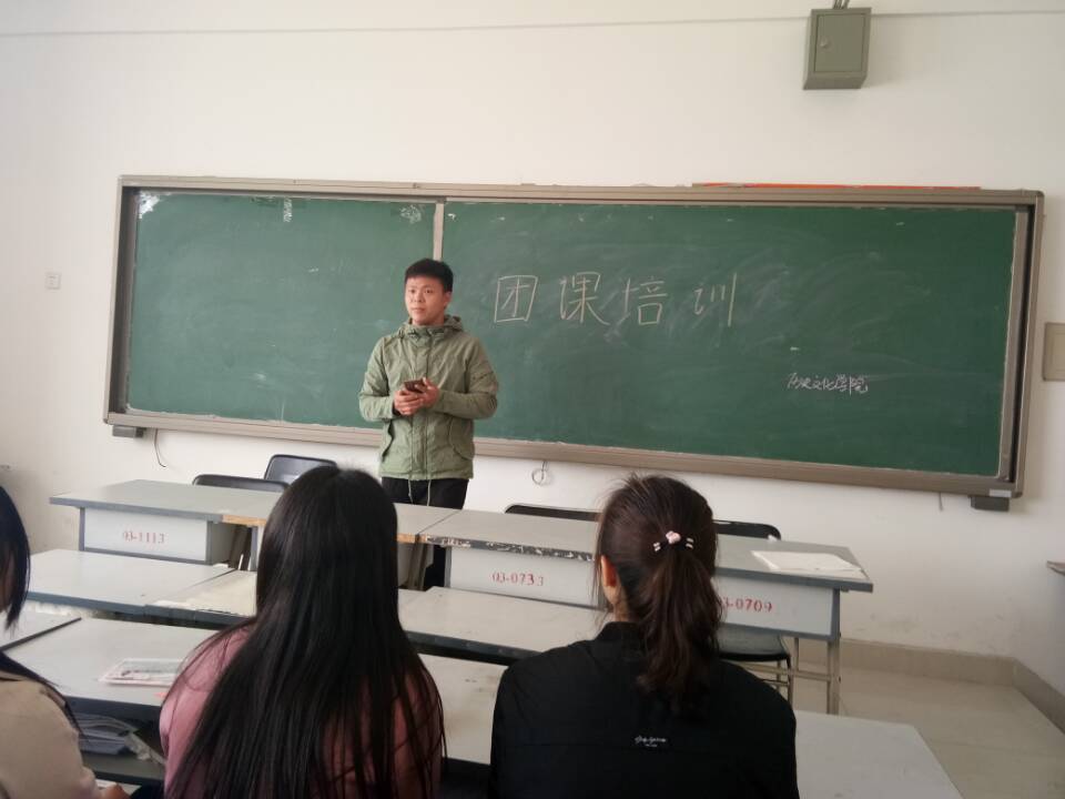 2017年3月29日中午十二点,历史文化学院在经管楼C414开展了团课培训,培训由15级文管班的团支书张军强同学主讲,16级历史学二班团员代表参加了此次培训。