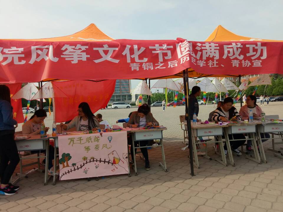 为了宣传中华传统民俗活动,继承优秀传统文化,2017年4月26日,历史文化学院在西校区广场举办了风筝文化节活动,历史文化学院学生党支部书记牛媚洁老师、青铜之后历史学社指导老师刘洪老师、辅导员薛丽丽老师出席了本次活动。