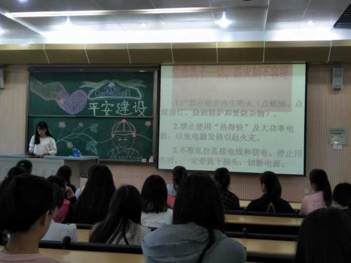 为响应学校号召,建设平安和谐校园,2017年4月18日下午,历史文化学院在综合教学楼B113开展了平安建设主题班会,由16级文化产业管理班班长邢方园同学主讲,大一各班同学参加了此次主题班会。
