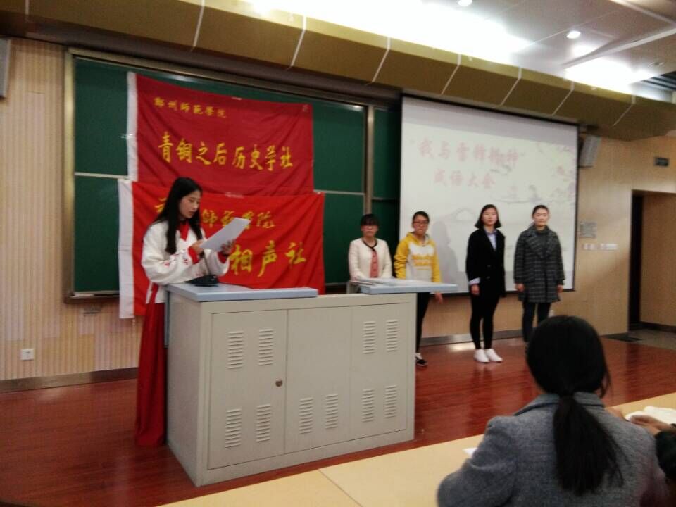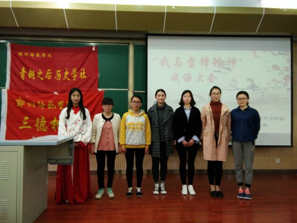2017年3月14日,历史文化学院在综合楼B112举办了"我与雷锋精神"成语大会决赛,此次活动由历史文化学院青铜之后历史学社主办,旨在传承中华传统文化,弘扬中华民族精神。